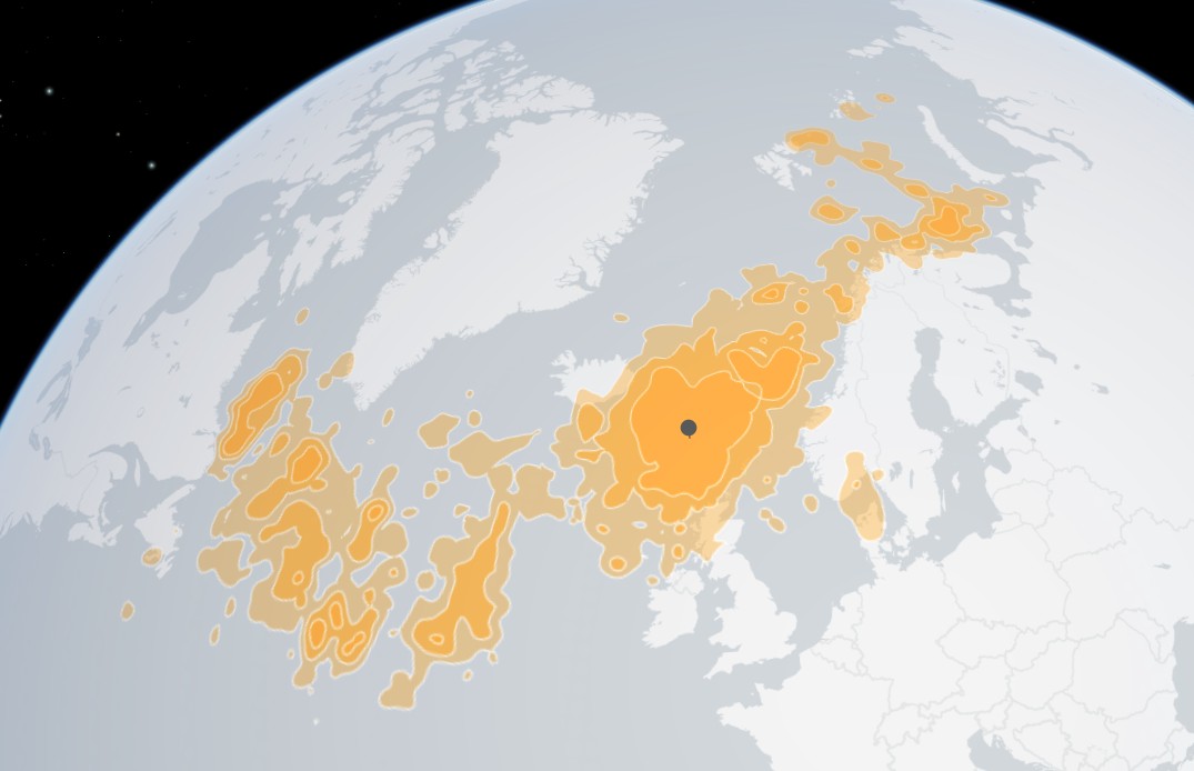 Í tíðarskeiðnum 2015-2026 vórðu 28 havhestar merktir við GLS-loggarum í Føroyum. Hetta kortið vísir, hvar ið hesir havhestarnir hava verið hetta tíðarskeiðið. Litaðu økini vísa, við alsamt sterkari liti, tann 25%, 50% og 75% kjansin fyri, at fuglurin finst í tí økinum.
